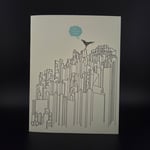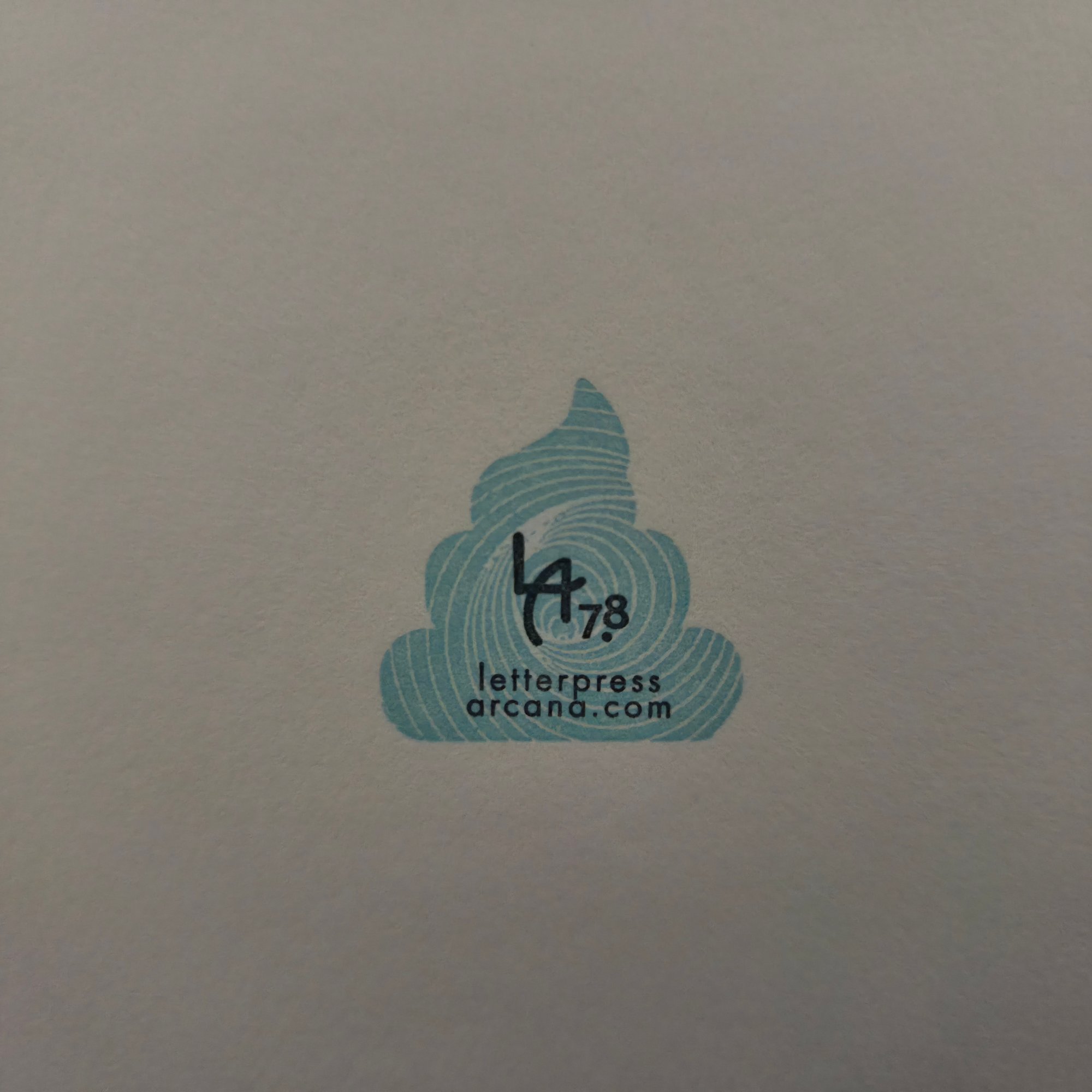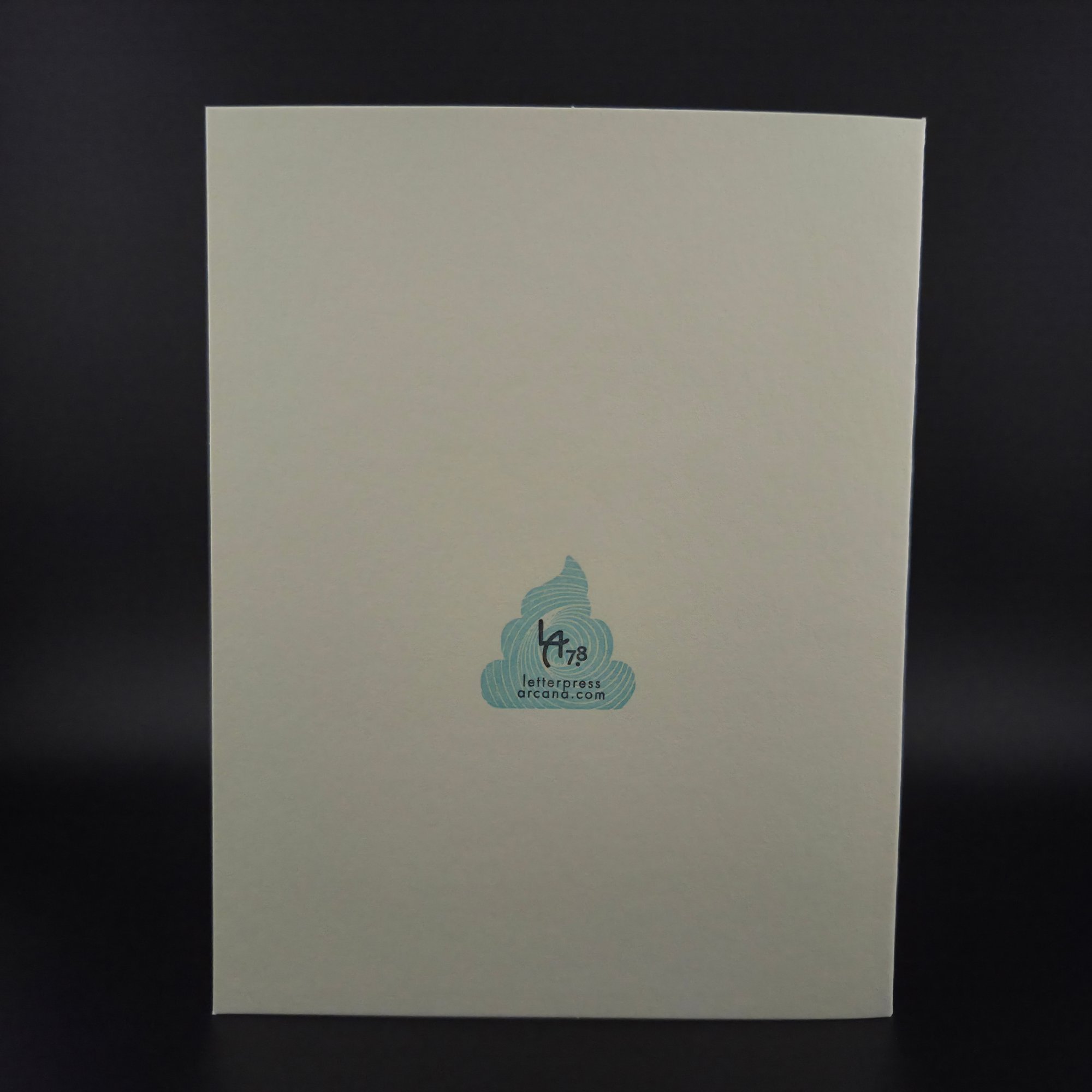 Run of 50. 4.25" x 5.5". 118lb. Flurry 100% cotton, white cover stock. Matching envelope included. Printed in black and pink on "Adsiltia," a 1912 Chandler & Price 10x15 letterpress.